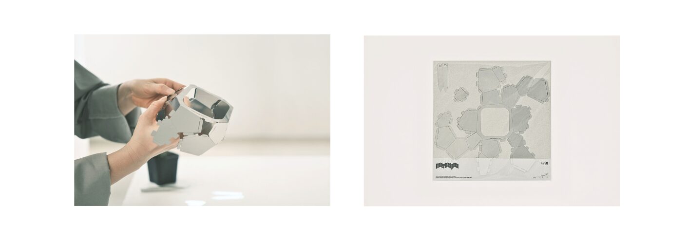metapoに新モデル「metapo D」(メイン写真4点のうち右端)が加わりました。ステンレスを折り曲げて組み立てる構造から生まれるmetapo。その“折り”の魅力をさらに引き出したのが、metapo Dです。面の構成を増やすことで立体感と陰影がいっそう際立ち、光や見る角度によって表情が変わる、造形性の高いモデルに仕上がりました。